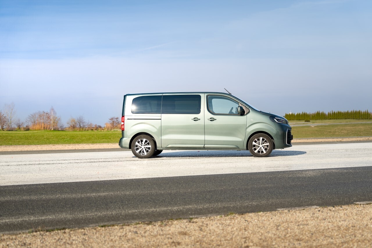 Pri vyšších rýchlostiach je cítiť aerodynamický odpor typický pre vysoké MPV. Elektrická verzia je však citeľne tichšia než diesel.